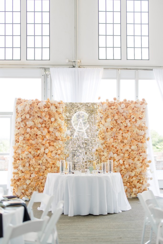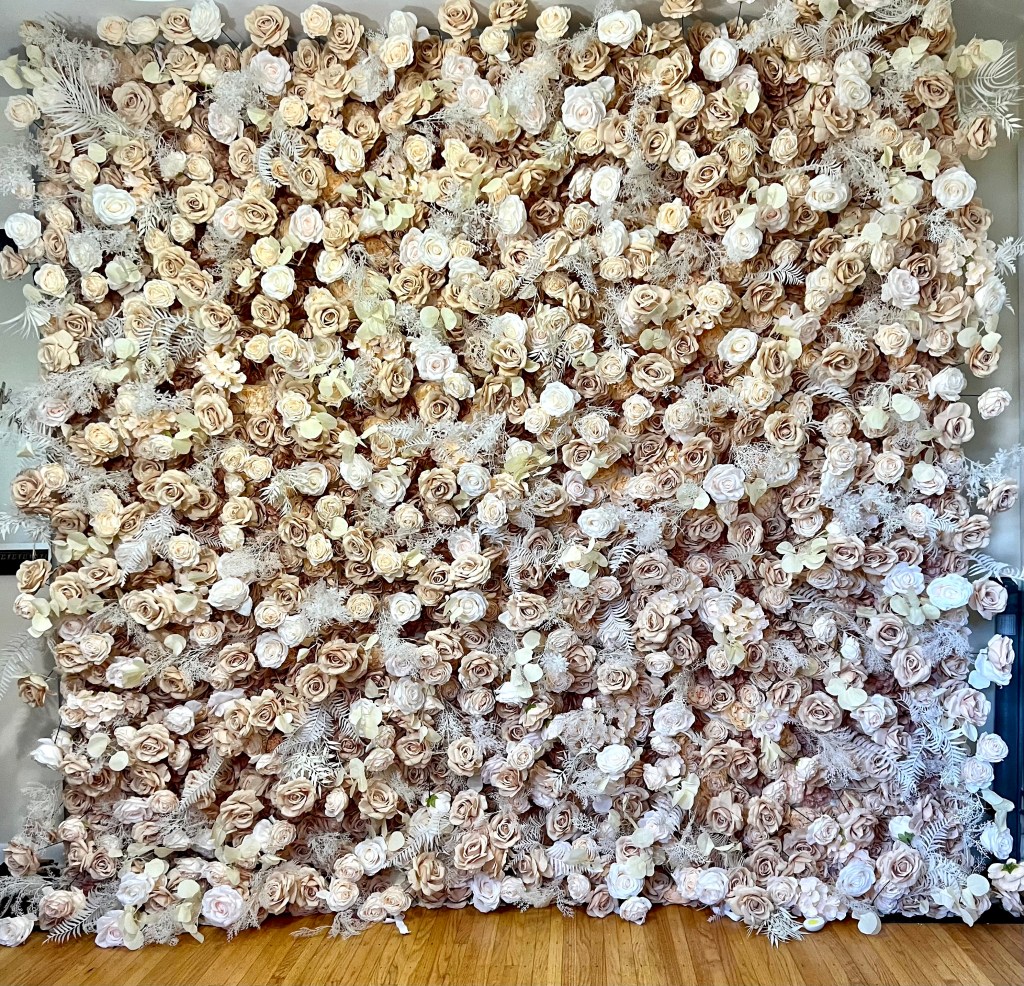 White & Champagne Flower Wall